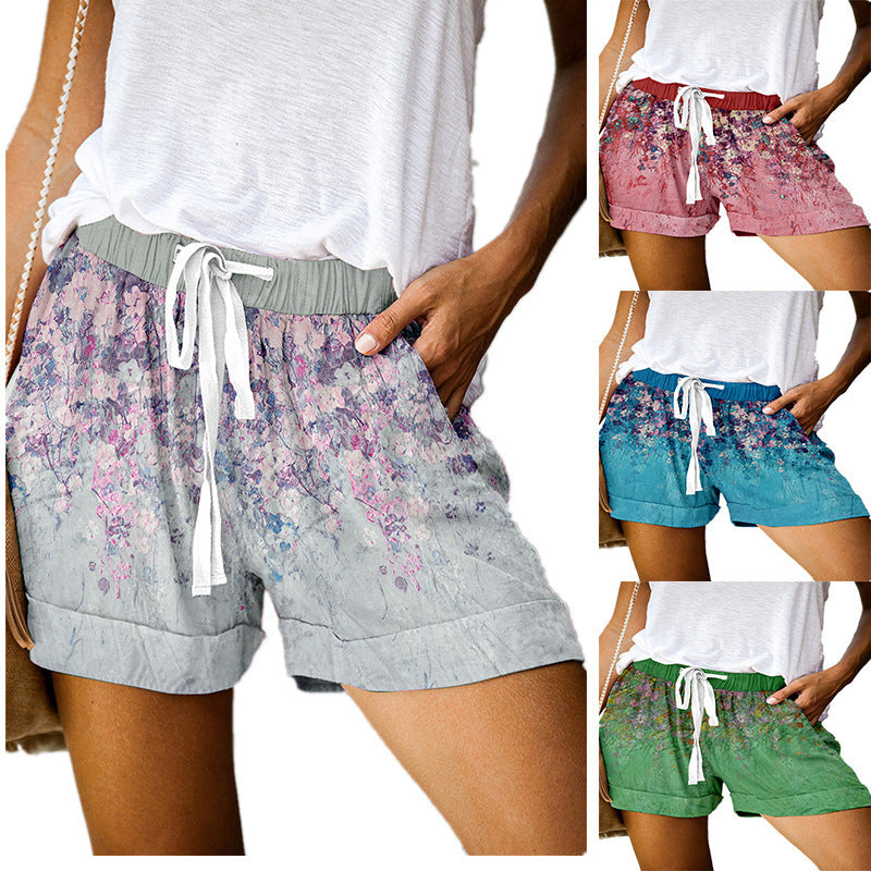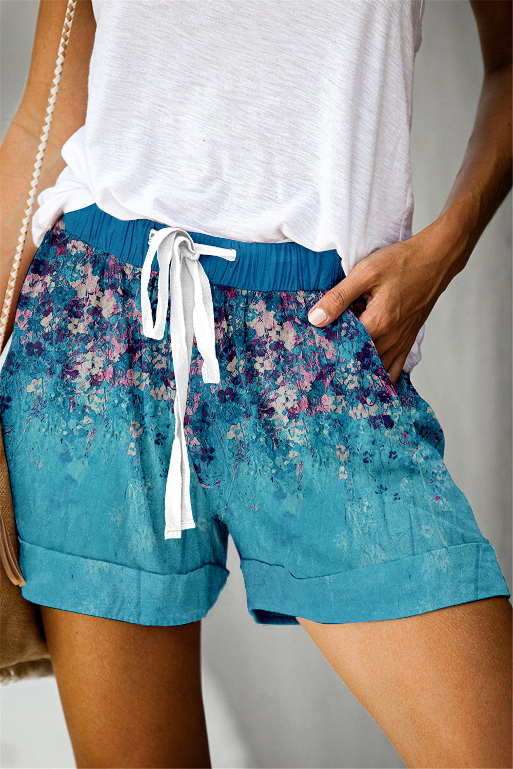 Positioning Printed Lace-Up Casual Wide-Leg Shorts Women