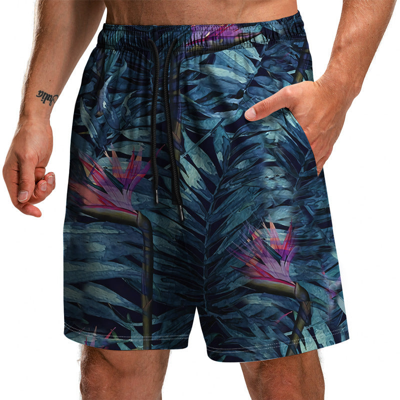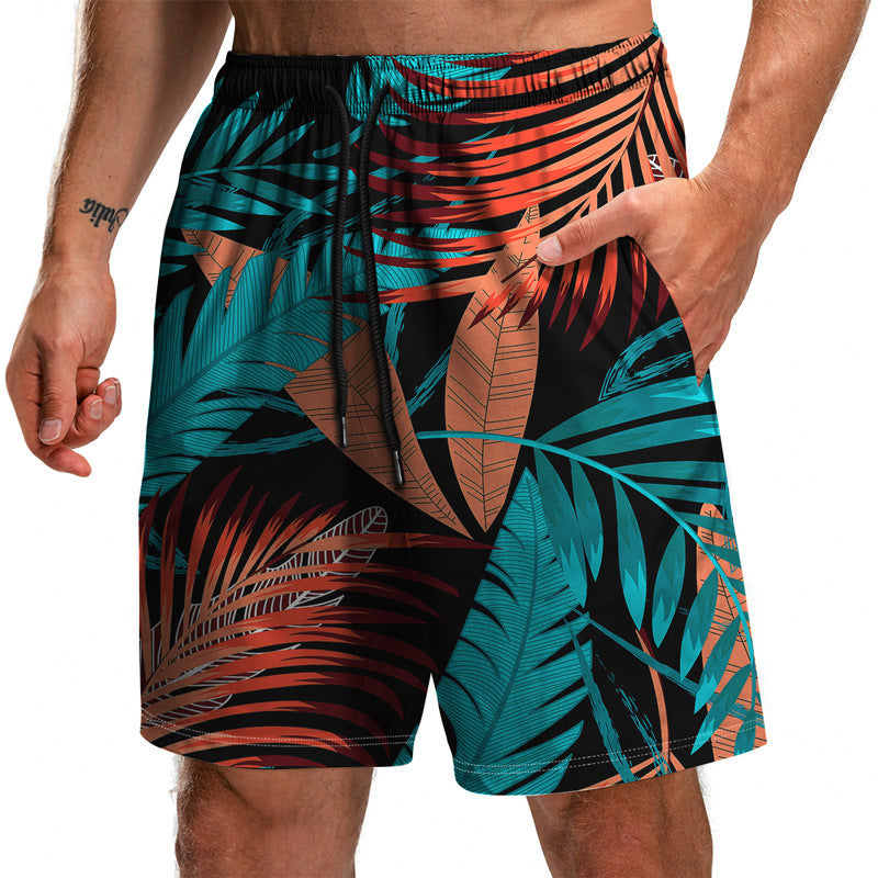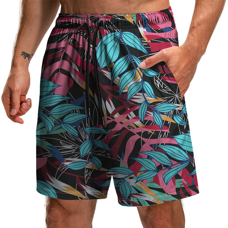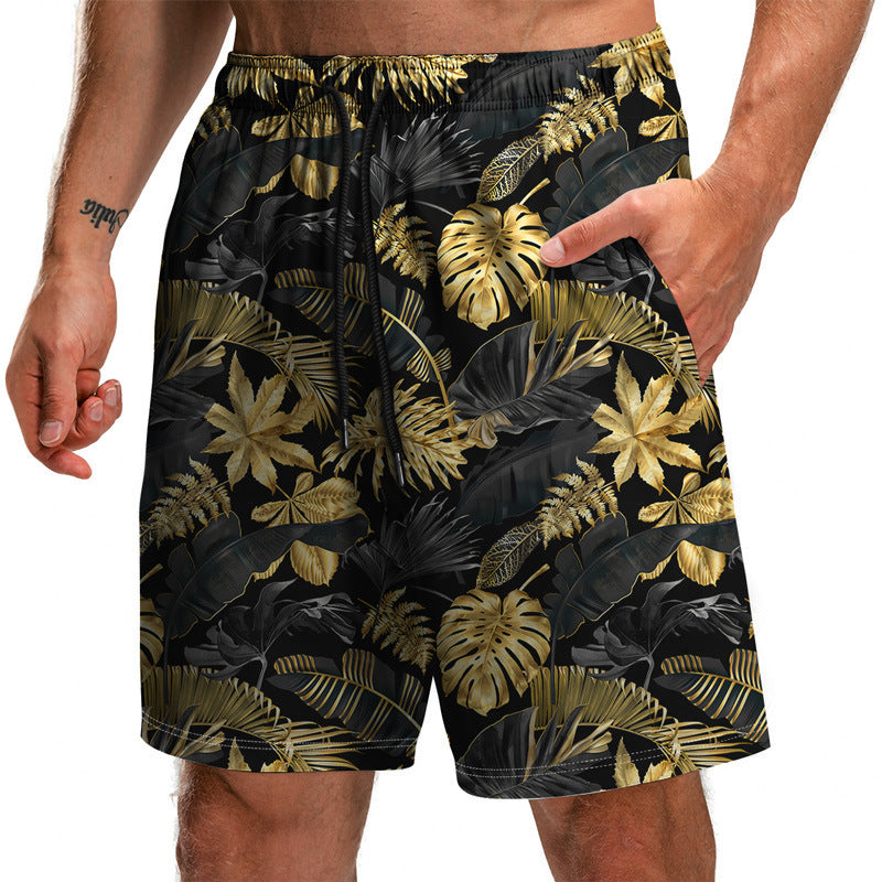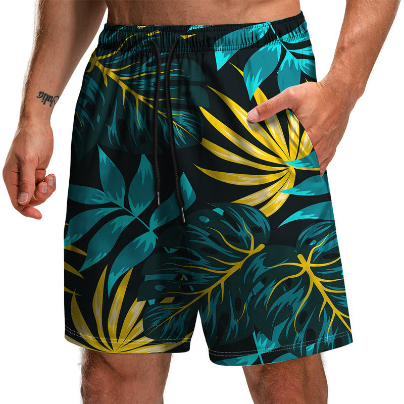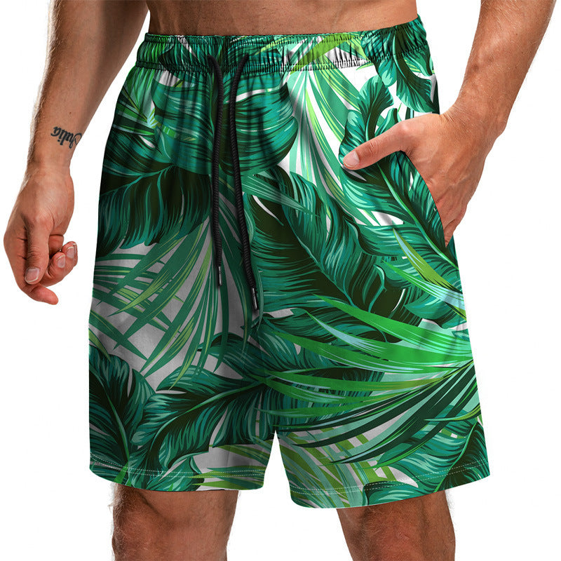 Summer New Leaf Series 3D Printed Shorts Loose Beach Pants Fashion Casual Shorts Men