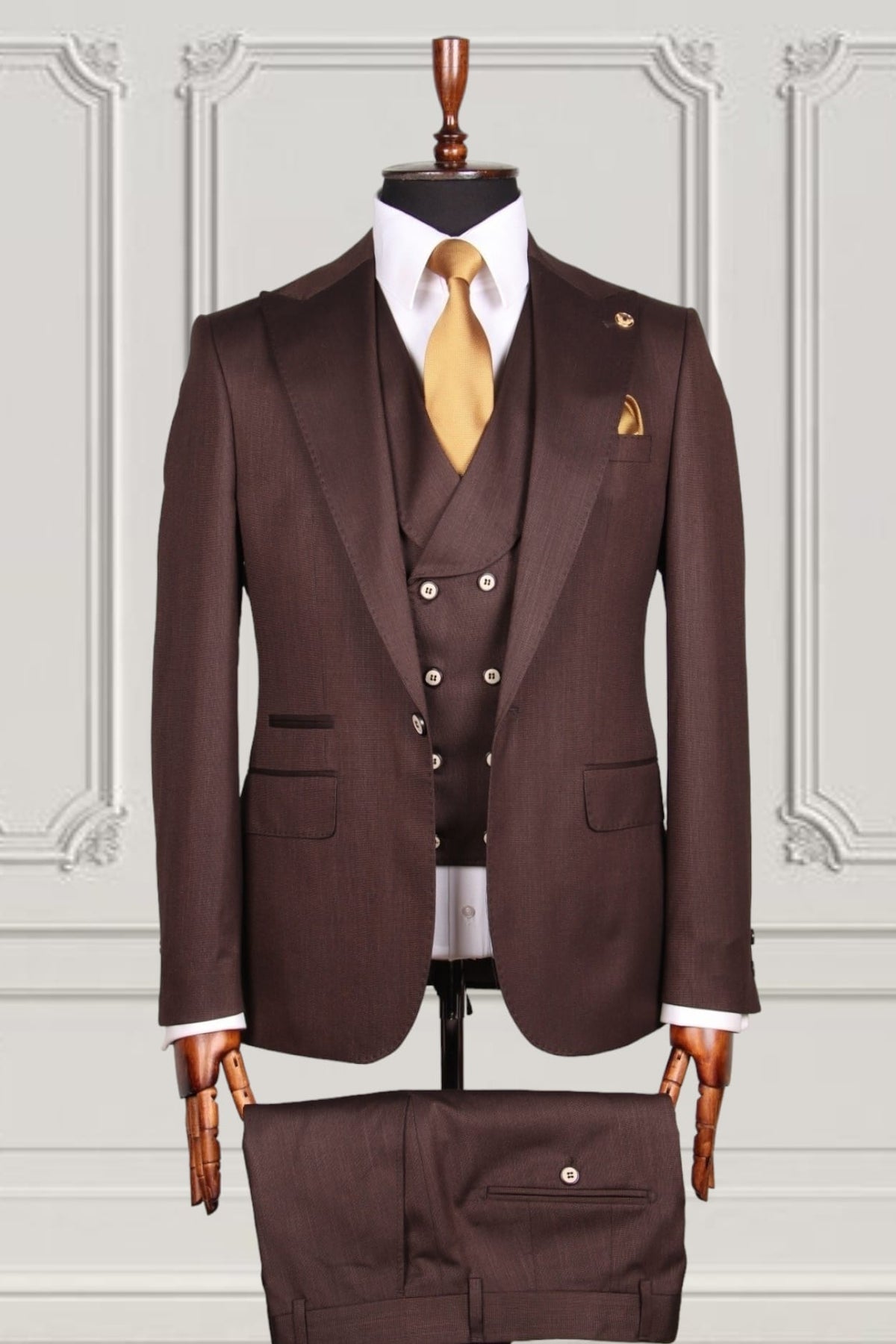 Upgrade your wardrobe with the Classic Three-piece suit. This ensemble includes a jacket, vest, and straight-leg trousers for a polished and versatile look. Perfect for any formal event, this suit exudes timeless elegance and is a must-have for any fashion-forward individual.