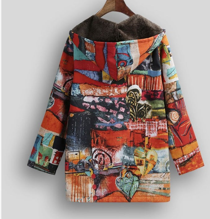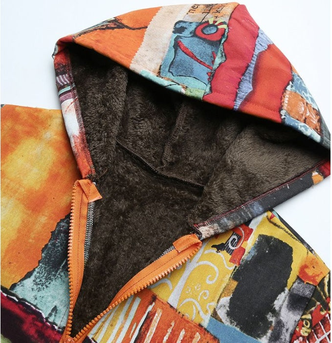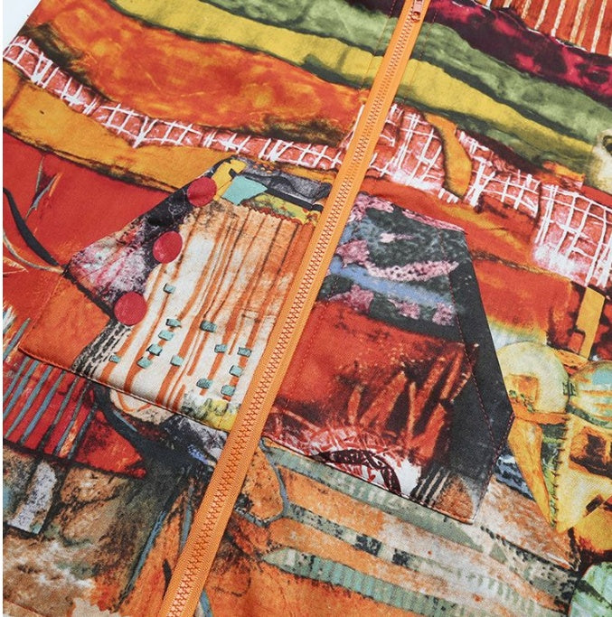 Versear Ethnic Women Jacket Colorful Graffiti Print Faux