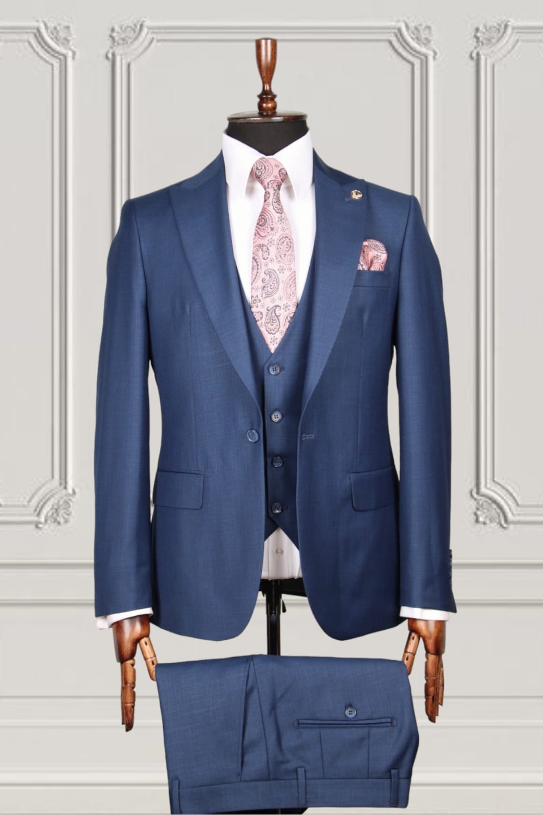 This classic three-piece suit includes a well-tailored jacket, vest, and straight-leg trousers that exude professionalism and sophistication. Perfect for any formal occasion, this suit is crafted with quality materials and expert craftsmanship for a timeless and elegant look. The perfect addition to any gentleman's wardrobe.