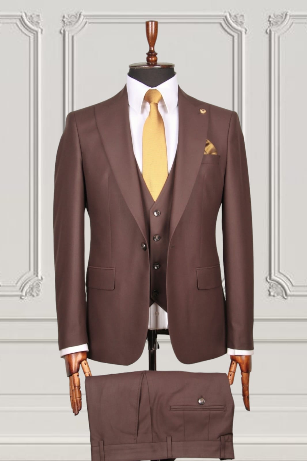 This classic three-piece suit includes a well-tailored jacket, vest, and straight-leg trousers that exude professionalism and sophistication. Perfect for any formal occasion, this suit is crafted with quality materials and expert craftsmanship for a timeless and elegant look. The perfect addition to any gentleman's wardrobe.