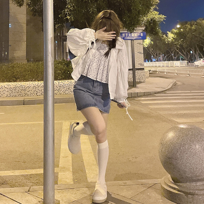 Category: White sun protection shirt Floral sling combination